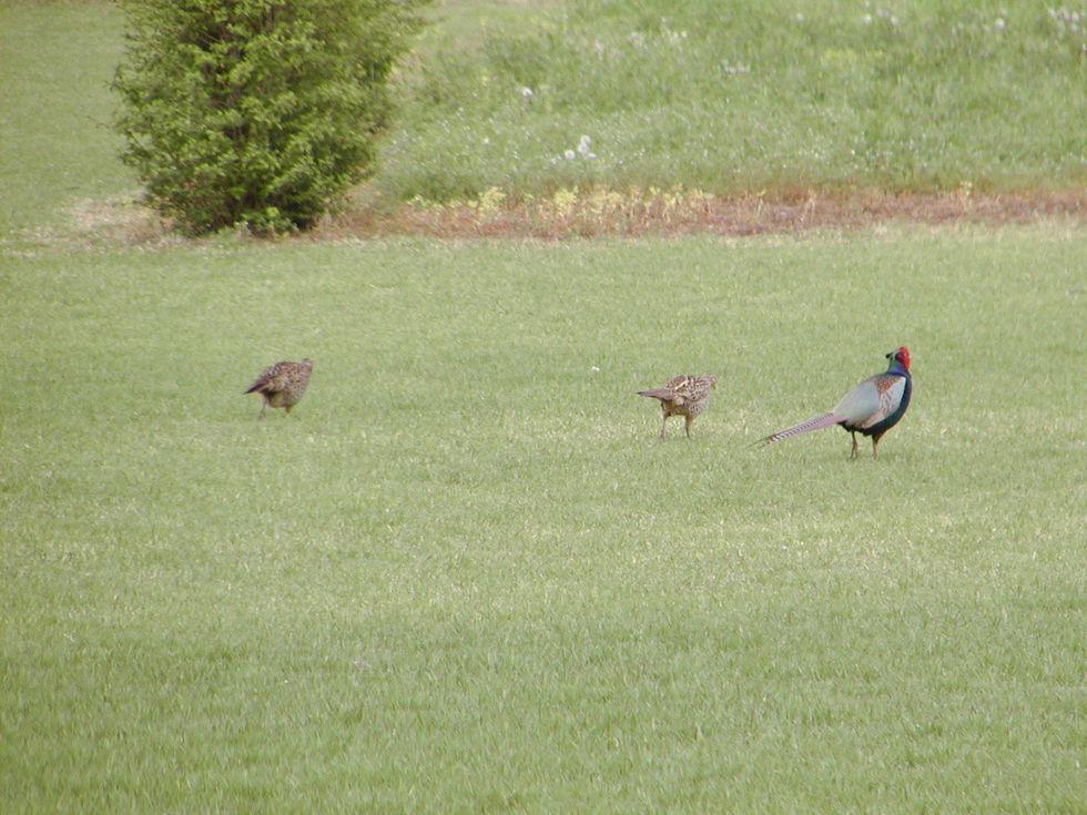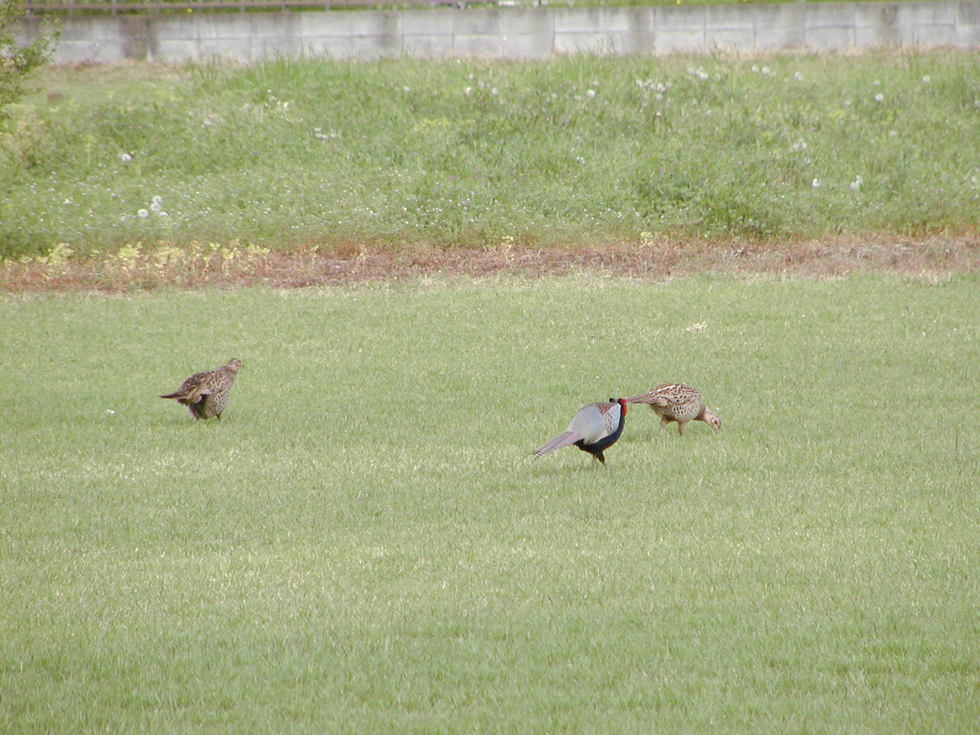 メスが一緒の写真はなかなか撮れないのですが、今年は我が家の前の芝生の脇の草むらに巣作りをしたようで、オス、メス一緒の写真が撮れました。